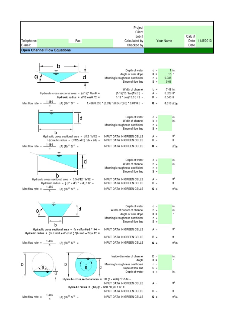 open channel flow calculator spreadsheet